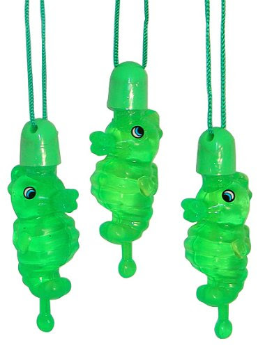 Each plastic sea life bubble bottle necklaces has a wand and hangs on a 30" cord.